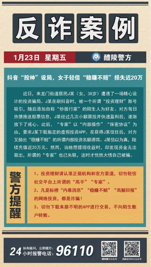 警惕!抖音“股神”设局 女子轻信“稳赚不赔”痛失近20万
