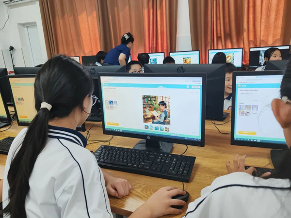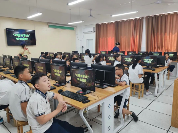 与此同时,在学校的计算机机房内,生成式人工智能体验活动同步开展。来自湖南艾游互动科技有限公司的专业讲师为学生们带来了一场别开生面的AI科普课程。课程涵盖生成式人工智能的基本概念、应用场景及实践操作,让学生通过AI工具亲手绘制“我心中的谭嗣同”等与谭嗣同相关故事画面,体验科技与人文的融合魅力。整堂课互动频繁、气氛热烈,学生在创作中不仅提升了信息素养,也加深了对历史人物的理解。