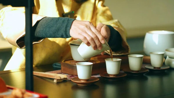 “第二是软装与文化器物。”她轻轻拿起手边一只天青色的汝窑茶杯告诉记者,“宋代的点茶文化登峰造极,而汝窑是宋‘五大名窑’之首,是当时的官窑。我们用汝窑,不是因为它的贵重,而是因为它与我们要表达的宋代美学紧密相连。”